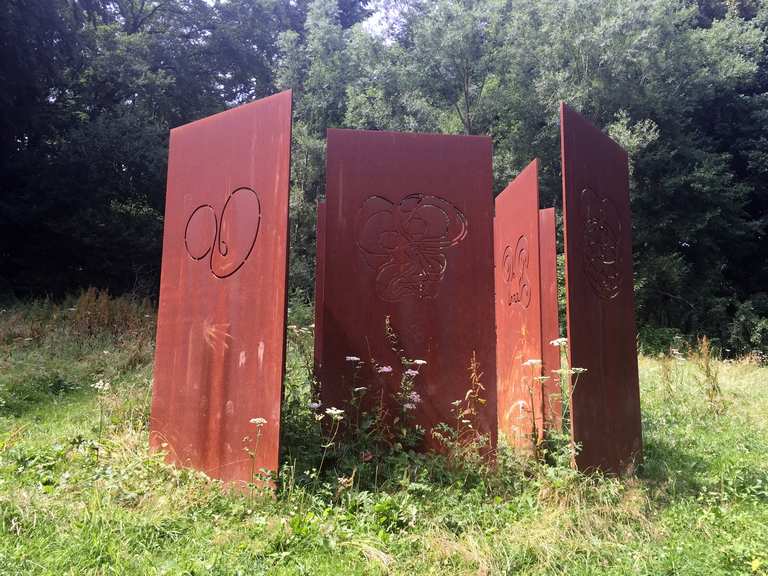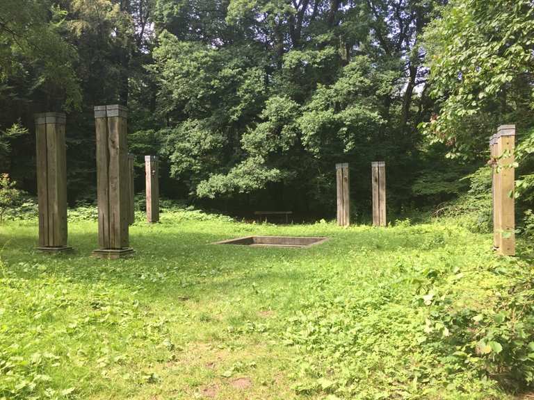 Künstler nekropole habichtswald. Rund um den blauen see im habichtswald stehen verstreut ungewöhnliche skulpturen. Die künstler nekropole im kasseler stadtteil harleshausen ist ein friedhof eine parkanlage ein kunstwerk des öffentlichen raums und ein wanderweg geschaffen von documenta künstlern die sich zu lebzeiten testamentarisch verpflichten sich im habichtswald am westlichen stadtrand von kassel nahe dem bergpark wilhelmshöhe am blauen see beerdigen zu lassen. Das geeignete gelände für diese künstler nekropole fand sich hier am blauen see im habichtswald. Etwa 2 km südlich liegt der bergpark wilhelmshöhe. Circa 6 000 quadratmeter idyllische landschaft geprägt von früherer bergbautätigkeit. Sie befindet sich im naturpark habichtswald am blauen see einem ehemaligen basalt steinbruch. Naturpark habichtswald führung in der künstler nekropole rund um den blauen see einem stillgelegten steinbruch im habichtswald stehen verstreut ungewöhnliche skulpturen.